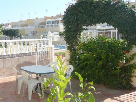 Blick von dem Haus-Patio zum Pool, direkt vor Ihrer Terrasse