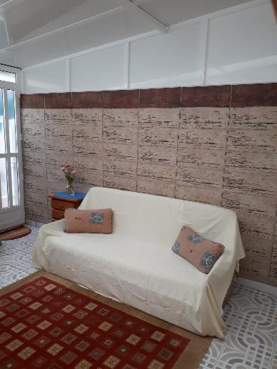 Wohnzimmer mit gemütlicher Couch (auch als Schlafcouch nutzbar)
